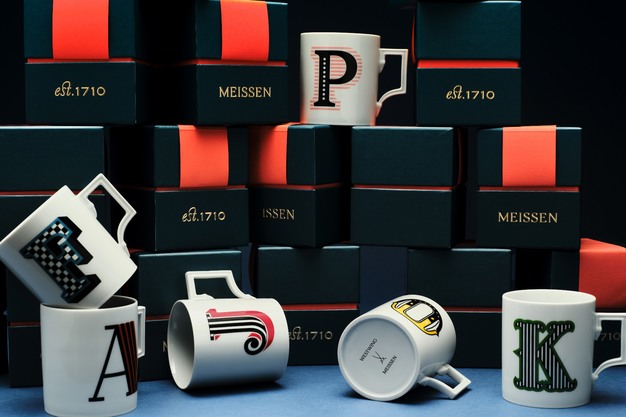 Meissen, opgericht in 1710 en wereldwijd bekend om zijn uitzonderlijke porselein en verfijnde esthetiek, vervaardigt elk product volledig met de hand. Voor de nieuwe collectie werden 27 unieke mokken ontworpen, voorzien van de letters Q-Z en het &-teken. Elke mok is afgewerkt met het kenmerkende "White Gold"-glazuur en draagt het iconische gekruiste zwaardenlogo, een symbool van Meissen's aandacht voor detail. De mokken worden geleverd in exclusieve, gezamenlijk gebrande verpakkingen, wat de samenwerking en de uniciteit van de collectie benadrukt.