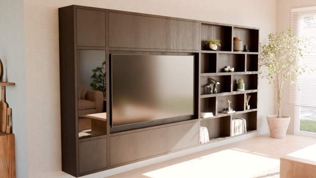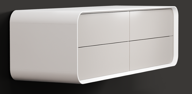Het uitgangspunt is één basiselement: een kastframe met afgeronde hoeken en verfijnde afschuiningen. Vanuit dit element ontstaat een modulair systeem dat eindeloos kan worden ingevuld en gepersonaliseerd.