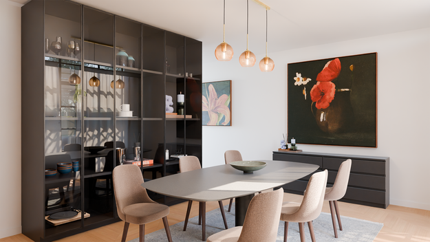Open vakken, lades of deuren van glas, spiegel of ribbelprofiel – met of zonder grepen, horizontaal of verticaal geplaatst, op poten of zonder onderstel. De afwerking – gefineerd of gelakt – geeft elke configuratie zijn eigen karakter.