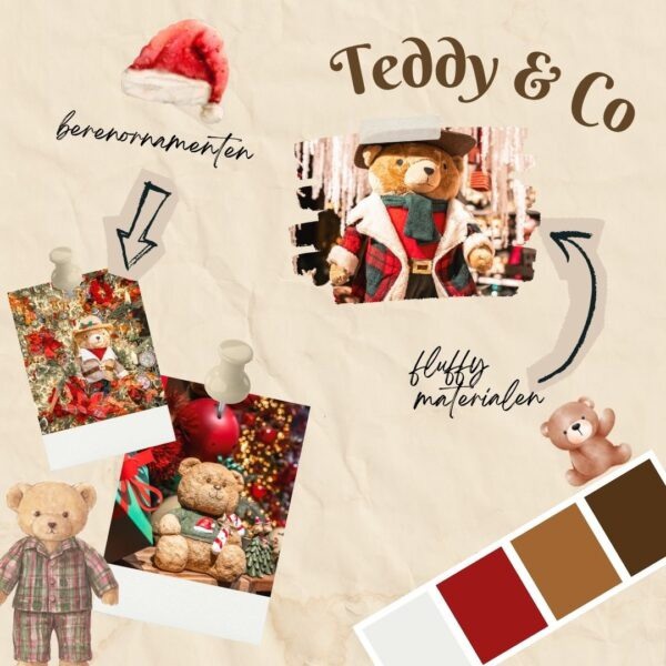 Wie het interieur extra knus wil maken, kan zich laten inspireren door de Teddy & Co-trend. Pluche materialen, teddy-ornamenten en zachte kransen geven een aaibare, cosy uitstraling. Warme tinten zoals karamel, zand en room zorgen voor een minimalistische, maar uitnodigende sfeer.