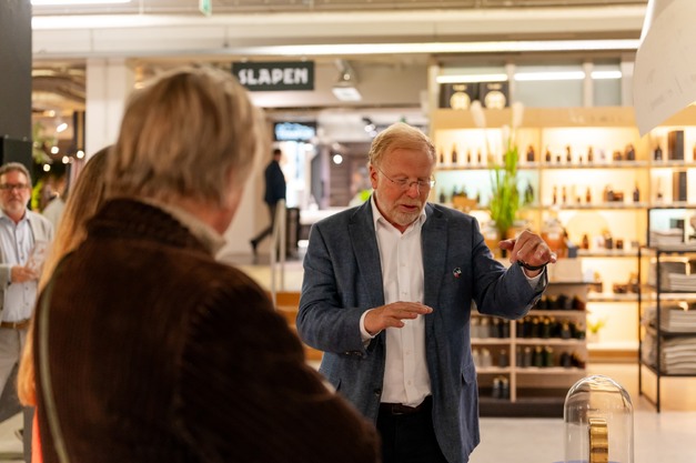 Eigenaar Jan Nijhof in gesprek met bezoekers tijdens het evenement.