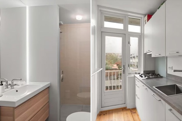 Het appartement zelf beslaat 55 vierkante meter en beschikt over twee slaapkamers, een lichte woonkamer met grote ramen en een balkon over de volle breedte. De keuken is uitgerust met moderne Siemens- en Bosch-apparatuur. De badkamer heeft een inloopdouche, terwijl het energielabel A++ en de grenenvloeren een duurzame en stijlvolle inrichting onderstrepen.