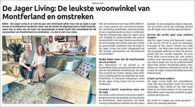 Met de voortdurende focus op kwaliteit, klantgerichtheid en een aantrekkelijke winkelomgeving blijft De Jager Living zich positioneren als een toonaangevende woonwinkel in de regio. Het proces van imago-verandering vraagt tijd en inzet, maar de positieve reacties van klanten geven volgens Paul energie en motivatie om door te gaan met het ontwikkelen van de winkel en de beleving die zij biedt.