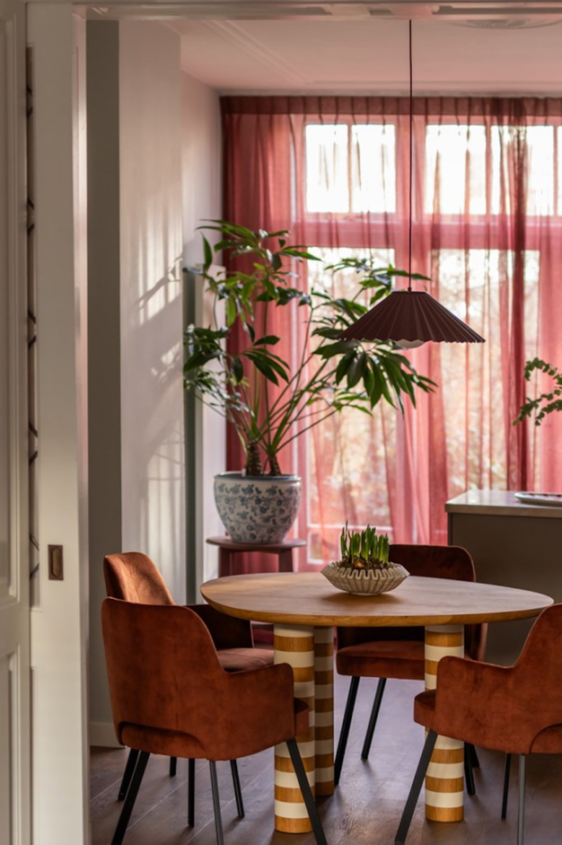 Wie nieuwe items wil toevoegen, kan ook tweedehands of zelfgemaakte meubels inzetten. Een kast schilderen of een stoel herstofferen geeft meubels een tweede leven. Roos volgt liever haar eigen gevoel dan elke trend, en benadrukt dat kleine, doordachte aanpassingen een interieur het hele jaar door laten meebewegen.