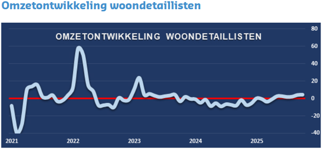 © MarktdataWoonwinkels (winkels in meubels, verlichtingsartikelen en artikelen voor woninginrichting met een algemeen assortiment) noteerden in september een groei van de omzetwaarde van 4,4 procent ten opzichte van dezelfde periode een jaar eerder volgens het CBS. De omzetgroei werd zowel veroorzaakt door een hoger prijsniveau als een hoger verkoopvolume. Het verkoopvolume nam met 1,7 procent toe.