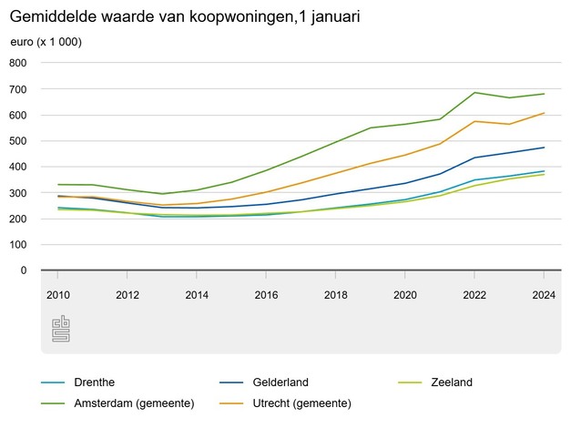 Ook het prijsverschil tussen Amsterdam en Gelderland is toegenomen: van 53 duizend euro in 2013 tot 235 duizend euro in 2019. Door deze stijgende prijsverschillen werd een verhuizing uit de Randstad financieel steeds aantrekkelijker. Na 2022 zijn de prijsverschillen tussen Amsterdam en regio's buiten de Randstad weer wat afgenomen. Ook in de gemeente Utrecht namen de woningprijzen relatief sterk toe, maar minder dan in Amsterdam.