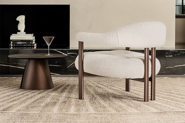 Daarnaast introduceert Cattelan Italia de Ruby Lounge, ontworpen door Castello Lagravinese Studio. Deze stoel past moeiteloos in zowel residentiële interieurs als projectomgevingen. De houten structuur, gecombineerd met een ergonomisch ontwerp en hoogwaardige materialen, garandeert duurzaamheid en zitcomfort. De ruime zitting met hoogwaardig polyurethaanschuim biedt optimale ondersteuning, terwijl de vloeiende lijnen van rug en armleuningen een uitnodigende vorm creëren. De zichtbare stiksels benadrukken het ambachtelijke karakter en de Italiaanse signatuur van het ontwerp.