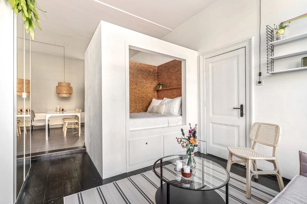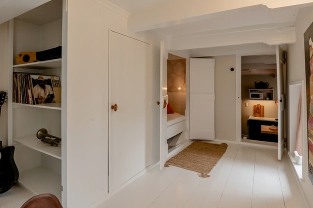 Ten slotte is er een benedenwoning in hartje Haarlem van 44 m², met een moderne bedstee in het midden van de woonkamer. Deze creatieve indeling verdeelt de ruimte en combineert functionaliteit met nostalgie. Vraagprijs: €360.000 k.k.