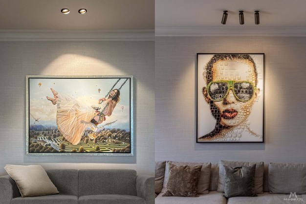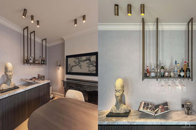 Maretti Lighting ontwikkelde een lichtplan dat deze balans versterkt. In de eetkamer hangt de Infinito 16-lichts kroonluchter, een blikvanger die ook als wandlamp in andere ruimtes terugkomt. Palermo trimless spots en Modesto kokerspots zorgen voor subtiele technische verlichting die de architectuur accentueert zonder te overheersen.