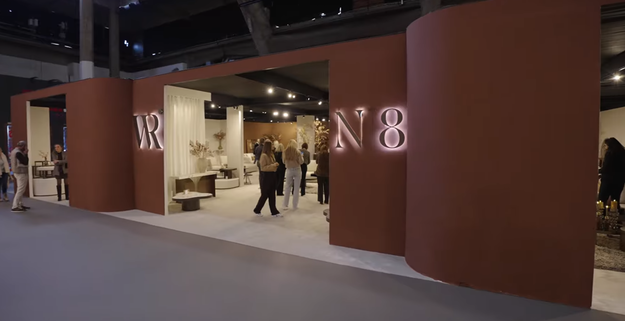 Het vooraanzicht van de Eight Furniture stand op Meubelbeurs Brussel 2025.