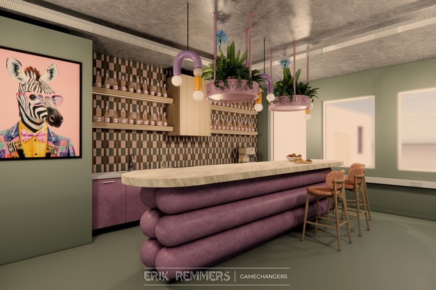 Erik Remmers, specialist in zakelijke interieurs, werkt momenteel aan een opvallend interieur voor het kantoor van talent agency Gamechangers B.V. "Soms komt er een project voorbij waarbij je meteen voelt dat het helemaal in je straatje valt. En als Bas Smit je vraagt om een ontwerp te maken voor het kantoor, weet je dat zowel het ontwerp als het proces een vrolijke bedoeling wordt," zegt Remmers.