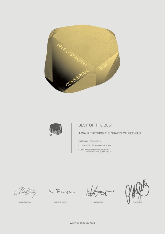 Studio Kars + Boom heeft internationaal succes geboekt met een bijzondere illustratieserie rond het Rietveld Schröderhuis. De ontwerpstudio won de hoogste onderscheiding in de categorie Commercial tijdens de Hiii Illustration Awards, een toonaangevende internationale prijs binnen de illustratie- en designwereld. De uitreiking vond plaats in China.