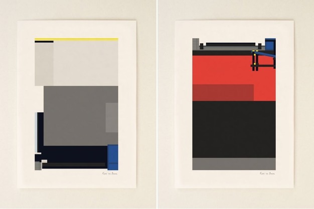 © Studio Kars + BoomDe prints vormen een abstracte en poëtische interpretatie van het iconische huis van Gerrit Rietveld. Lijnen, vlakken, kleuraccenten en zichtassen uit het interieur en exterieur zijn vertaald naar zelfstandige grafische composities. Daarmee verbeelden de werken zowel de speelsheid als de functionaliteit van het modernistische ontwerp, uitgevoerd in de heldere beeldtaal die Studio Kars + Boom kenmerkt. Alle prints zijn digitaal gedrukt en voorzien van een handgeschreven signatuur en preegstempel.