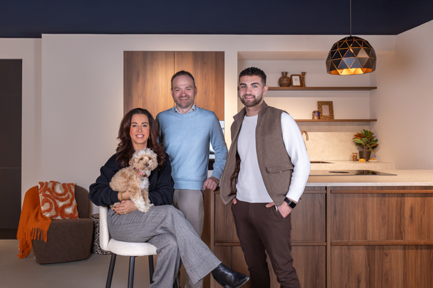 Eigenaar Jos (midden) van Hello Kitchen Almelo met Petros en styliste Francis.