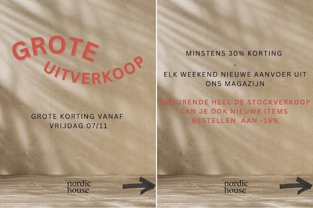 Voor klanten is er een grote uitverkoop, met kortingen van 30 tot 50 procent op meubels, verlichting, accessoires en zelfs winkelinrichting. Wekelijks wordt het aanbod aangevuld vanuit het magazijn. De uitverkoop vindt plaats elke vrijdag en zaterdag tot en met 27 december.