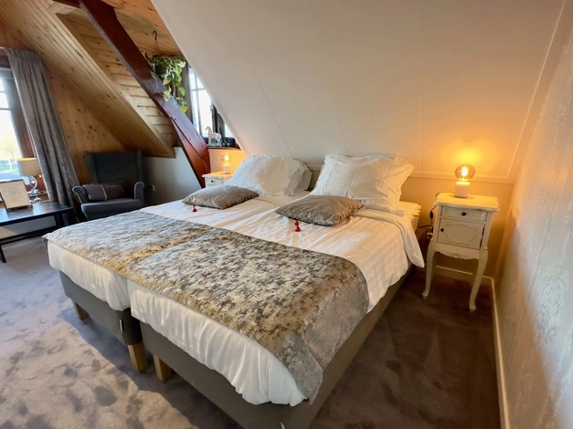 Het huis herbergt bovendien een bijzondere collectie schilderijen, variërend van werken uit de 18e eeuw tot een schilderij van Jan Keizer, voormalig zanger van BZN. Rick heeft veel zorg besteed aan de inrichting en vult de woning regelmatig aan met antieke meubels, lampen en accessoires.