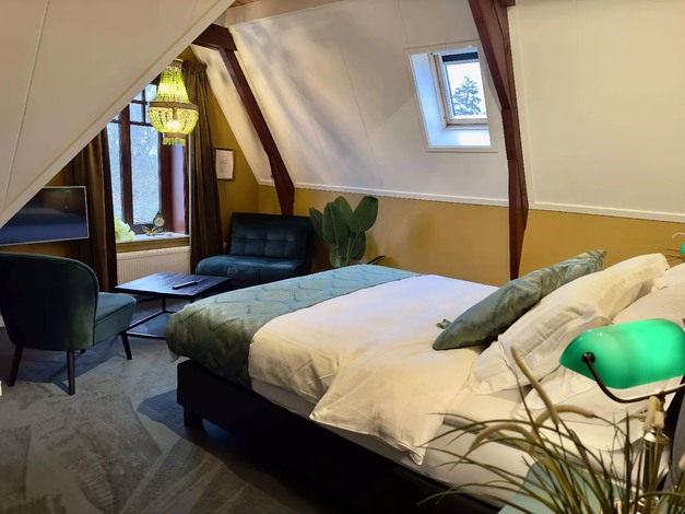 Drieënhalf jaar geleden kochten ze de karakteristieke jugendstil-villa, die voorheen dienstdeed als locatie voor wijkverpleging en het consultatiebureau. Sindsdien hebben ze het interieur volledig verbouwd en verduurzaamd, met behoud van een klassieke, antieke uitstraling. De B&B-kamers kregen historische namen, zoals de Hildo Krop-kamer, de Van den Kornput-kamer en de Kleibeuker-kamer. Tot de woning behoort bovendien een tropische tuin met verwarmd zwembad.