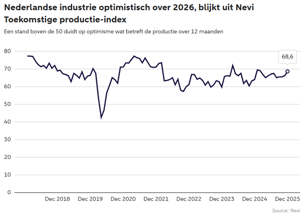 Toch is de industrie optimistisch over 2026. Verreweg de meeste respondenten verwachten groei in het komende jaar, dankzij aantrekkende investeringen en de introductie van nieuwe producten. Voor het eerst sinds september nam de werkgelegenheid weer wat toe, wat duidt op vertrouwen in de toekomst.