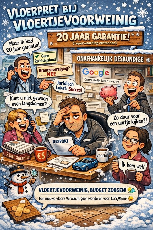 Volgens Benno Broen, erkend onafhankelijk en gerechtelijk deskundige in vloeren, lopen de verwachtingen van consumenten over garanties en geschiloplossing regelmatig ver uiteen met de praktijk. In een persoonlijke toelichting schetst hij hoe met name bij budgetvloeren onrealistische verwachtingen ontstaan zodra zich problemen voordoen.