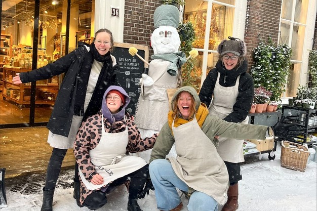Sneeuw of geen sneeuw: het team van Dille & Kamille in Amersfoort liet zich er niet door tegenhouden. Voor de winkel verscheen een échte Dille-sneeuwpop, gemaakt met oog voor detail, creativiteit en vooral veel plezier.