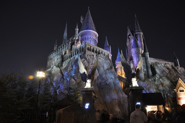 Harry Potter Castle bij nacht in Universal Orlando, Florida, VS.
