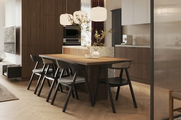 Waar keukens jarenlang werden gedomineerd door zwarte accenten, komt daar in 2026 verandering in. Details in messing, goud en brons brengen juist weer warmte in de ruimte. Ook organische vormen komen steeds vaker terug, geïnspireerd door de geliefde Japandi-stijl. Ronde hoeken en zachte lijnen zorgen direct voor een aangename sfeer. Hiermee kun je de rustgevende look ook prachtig laten doorlopen in je eetkamer en zithoek.