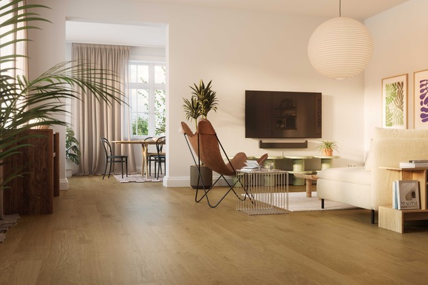 Hoewel vaak geassocieerd met traditionele interieurs, zijn donkere vloeren veelzijdig. "Donkere houttinten sluiten aan bij een breed scala aan ontwerpstijlen en vormen een solide basis voor verschillende kleuren, afwerkingen en meubels", zegt Julie. "Van gezellige woonruimtes tot uitgestrekte moderne interieurs: tinten zoals Terra Brown of Hard Smoked passen bij zowel warme als koele kleurenpaletten."