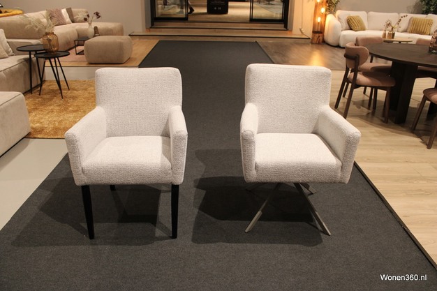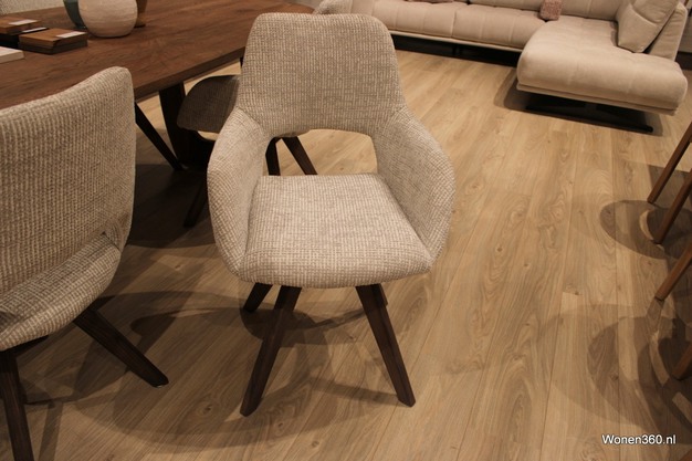 Naast de banken toonde Wiebe ook nieuwe eetkamerstoelen. Over model Wilson zegt hij: "Dat is een luxe eetkamerstoel. Die je als fauteuil kan je gebruiken bij visite m.a.w. het is comfortabele stoel." De stoel is rondom voorzien van koudschuim. Verder: "Deze is leverbaar met eiken poot en metalen autoreturn poot." De getoonde uitvoering in RAL-kleur 7039 (quartzgrijs) schijnt een kleur in opkomst te zijn. "Het eiken onderstel kan in vier verschillende kleuren. Daarnaast kan de Wilson gestoffeerd worden in ontzettend veel verschillende stoffen."
