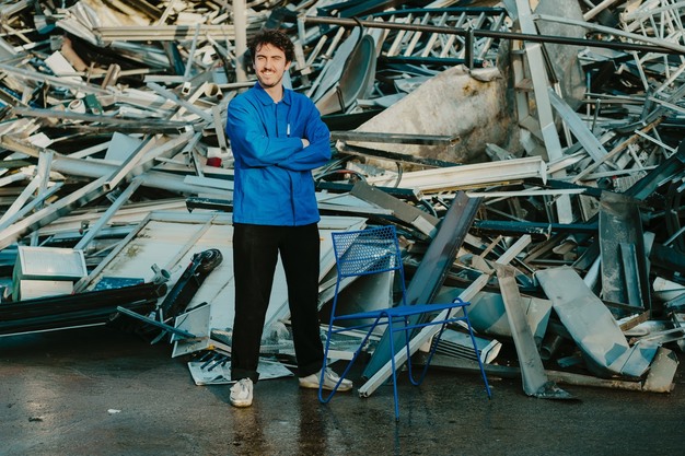 Met de Scrap Chair zet Rover Aalsters restmateriaal centraal. De stoel wordt volledig opgebouwd uit overschotten uit de Aalsterse industrie: zitting en rug uit restplaten van Haemers NV (geperste sluitringen) en een frame uit betonijzer-overschotten van Megaton, onderdeel van de Willy Naessens Group. Door deze reststromen centraal te zetten, toont de Scrap Chair hoe lokaal industrieel materiaal een tweede leven kan krijgen.