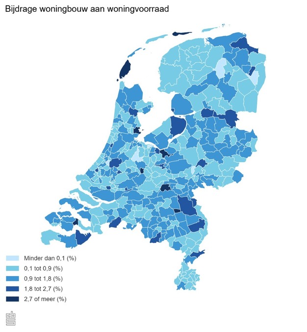 In Kapelle stijgt het aantal woningen naar verhouding het meest. Hier werden 260 woningen gebouwd, dit is een uitbreiding van de woningvoorraad met 4,7 procent.
