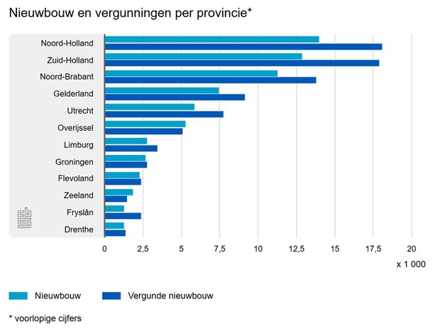 Meeste nieuwbouw en vergunningen in Noord-Holland