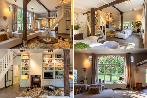 In het Gelderse Epse staat een karakteristieke woonboerderij te koop die authentieke elementen als houten balken en een rieten dak combineert met modern interieur en comfortabele voorzieningen. Het pand biedt 194 m² woonoppervlak, verdeeld over zes kamers, waaronder drie slaapkamers, twee badkamers en een apart toilet.