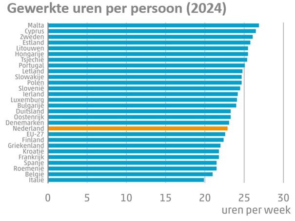 In Nederland is de trend tot nu toe beperkt. Volgens CBS-expert Peter Hein van Mulligen presteren Nederlanders bovengemiddeld als productiviteit wordt meegewogen, ondanks kortere werkweken.