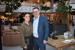 · Een houten eettafel gecombineerd met gestoffeerde stoelen