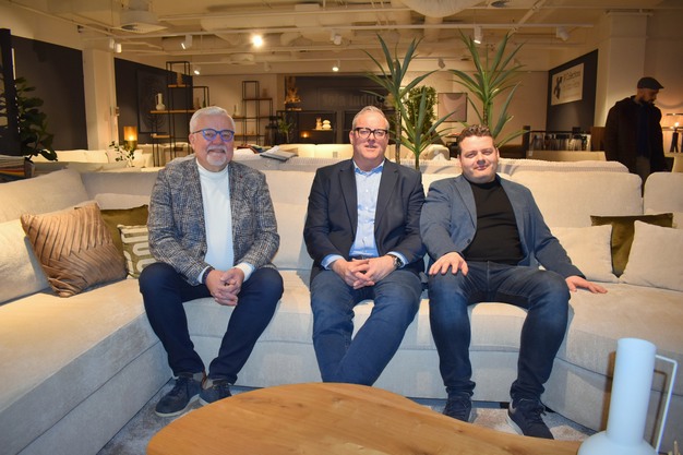 Jaap Rebel met de nieuwe accountmanager Rob Drabbe (midden) en zoon Allard, die binnen Sofa Industries het kantoor in Nijkerk onder zijn hoede heeft.