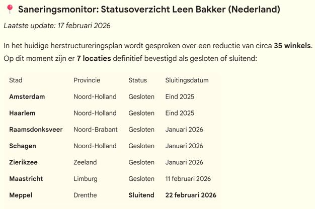 De herstructurering bij Leen Bakker nadert een nieuw dieptepunt. Na de recente sluiting in Maastricht, trekt de woonketen zich nu ook terug uit Meppel. Het filiaal aan de Blankenstein sluit op zondag 22 februari definitief de deuren. Hiermee komt het aantal gesloten vestigingen in korte tijd op zeven.