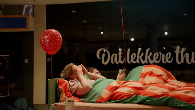 In het atrium van Woonmall Alexandrium werd een speciaal ingerichte slaapsetting gecreëerd, waar wonen en beleven samenkwamen. Tussen zorgvuldig gestylde interieurs en complete slaapkameropstellingen ervaarden de koppels hoe het is om letterlijk te overnachten op een plek waar normaal inspiratie wordt opgedaan.