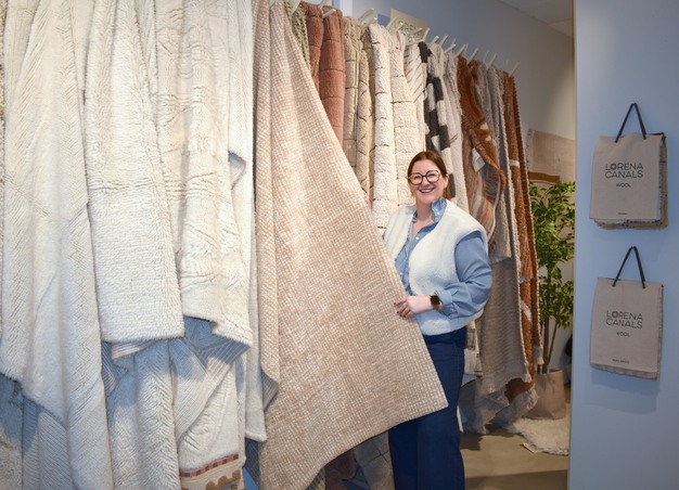 Een van de opvallende namen op de beursvloer is het textielmerk Lorena Canals. Isabella Beelen (zie foto hierboven), al 14 jaar werkzaam voor het bedrijf, vertelt gepassioneerd over hun 'Woolable'-collectie: "Wij hebben als enige ter wereld vloerkleden in het assortiment die gewoon in de wasmachine kunnen." Het bedrijf, dat meer dan 200 ambachtslieden in India in dienst heeft en daar sinds 2010 zelfs een eigen school voor 120 kinderen financiert, maakte onlangs de overstap naar de Home & Living-verdieping. "We zijn ooit begonnen met de kids-collectie, maar focussen ons nu ook sterk op tapijten op maat en interieurobjecten van gerecyclede petflessen," aldus Beelen.