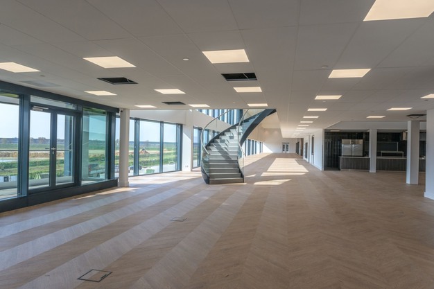 Als basis werd de bestaande monolithische vloer zorgvuldig voorbehandeld en geëgaliseerd. Daarmee is een vlakke en slijtvaste ondergrond gecreëerd voor de verdere afwerking, afgestemd op de uiteenlopende functies binnen het gebouw.