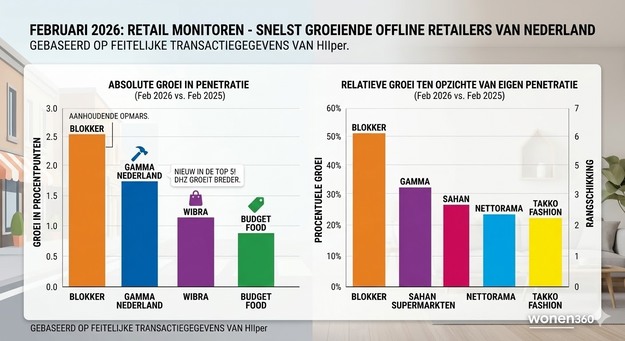 De consument weet de weg naar de fysieke winkelstraat in februari goed te vinden, waarbij opvallende verschuivingen zichtbaar zijn in de woon- en klussector. Uit de nieuwste Hiiper Retail Monitor blijkt dat Blokker zijn herstel doorzet en dat GAMMA Nederland zich als nieuwkomer in de top van snelst groeiende retailers meldt.