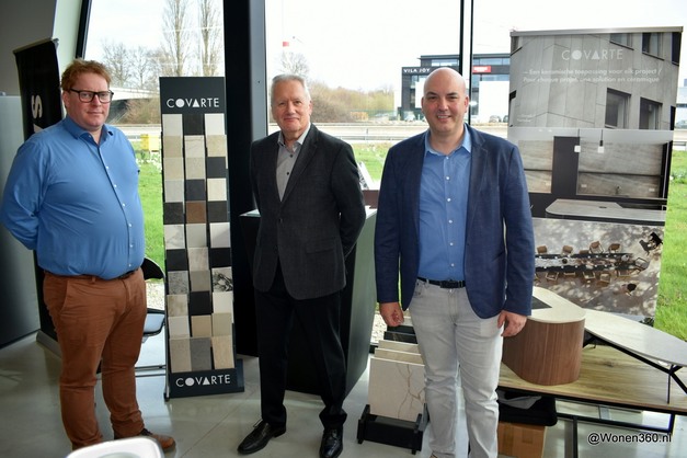 Covarte, het bijna 100-jarige bedrijf uit Nieuwkerken-Waas, toonde hun expertise in hoogwaardige tafel- en keukenbladen. Het bedrijf is actief in de bewerking en afwerking van XXL keramisch plaatmateriaal tot de meest creatieve ontwerpen. Alexander Viaene, Frank Vanzeebroeck en Michael Curci (v.l.n.r.) vertelden de bezoekers er van alles over.