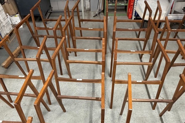 De stoelen werden naar de werkplaats van Harvink teruggebracht, volledig gedemonteerd en met vakmanschap hersteld. Dankzij de demontabele constructie konden onderdelen gericht worden vernieuwd of opgefrist, zonder dat het gehele meubel verloren ging.