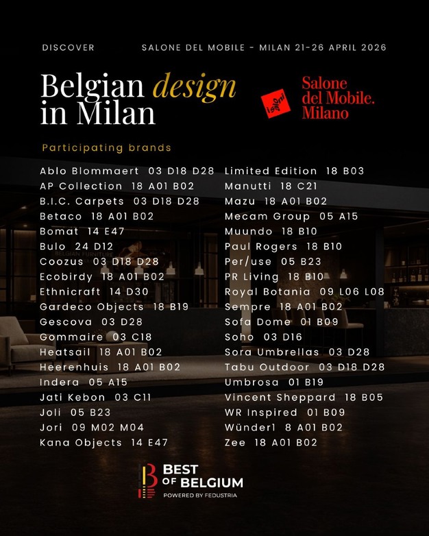 Dit jaar is de Belgische aanwezigheid niet beperkt tot de beurshallen van de Rho Fiera. Ook in de stad zelf, in het prestigieuze Brera Design District, laat de sector van zich horen. Een van de speerpunten van de aanwezigheid is de expositie 'Best of Belgium'. Dit is een gecureerde selectie die de specifieke identiteit en de esthetische kracht van het Belgische designlandschap moet onderstrepen.