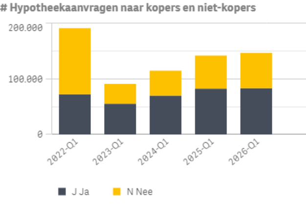 De Nederlandse hypotheekmarkt begon 2026 met terughoudende cijfers, maar sloot het eerste kwartaal af met groei. Volgens HDN (Hypotheken Data Netwerk), dat vrijwel alle hypotheekaanvragen in Nederland registreert, verwerkte de organisatie 146.814 aanvragen in Q1, een stijging van 3,3% ten opzichte van dezelfde periode in 2025. Daarvan betroffen 83.378 aanvragen de aankoop van een woning (+1,1%) en 63.436 de niet-kopersmarkt (+6,4%).