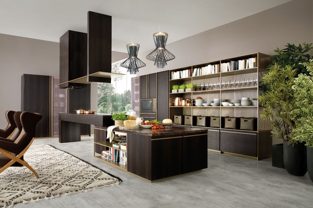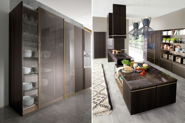 Het hart van het ontwerp wordt gevormd door het keukeneiland in thermisch behandeld eikenhout. Dit element overstijgt zijn functionele rol en fungeert als een sociaal en narratief middelpunt binnen de keuken. Het eiland sluit aan bij thema's als gastvrijheid, samenzijn en interactie, en weerspiegelt de hedendaagse visie op de keuken als dynamische leefruimte.
