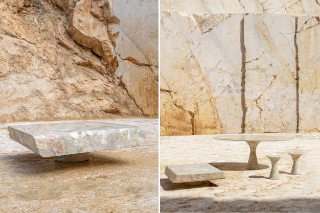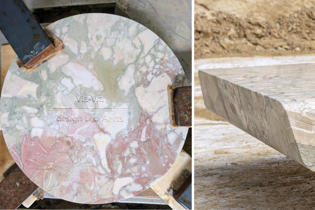 De tafel wordt uitgevoerd in Ceppo di Sicilia, een marmersoort afkomstig uit Sicilië, die zich kenmerkt door uitgesproken texturen en kleurnuances. Via Via is beschikbaar in zowel vierkante als rechthoekige varianten. Daarnaast wordt een outdoorversie geïntroduceerd, voorzien van een aangepaste afwerking die bestand is tegen uiteenlopende weersomstandigheden.