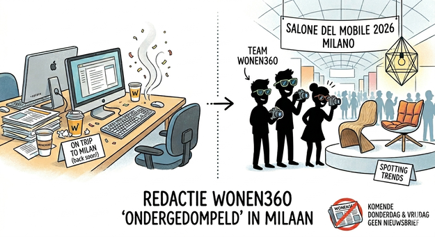 Wie de redactie van Wonen360 deze week zoekt, vindt ons niet achter een bureau in de Thoolse polder of bij een productiebedrijf in Nederland of België, maar tussen de design-grootheden op de Salone del Mobile 2026. Tot en met vrijdag 24 april ruilen we onze toetsenborden in voor de beursvloer om de allerlaatste trends en noviteiten voor jou te spotten.