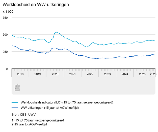 In maart 2026 is de werkloosheid in Nederland licht gedaald. Volgens nieuwe cijfers van het Centraal Bureau voor de Statistiek (CBS) was 4,0 procent van de beroepsbevolking werkloos, tegenover 4,1 procent in februari. In totaal ging het om 407 duizend werklozen.