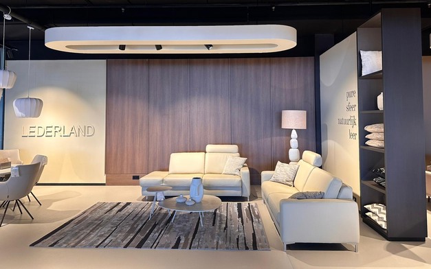 Een opvallende vernieuwing is de centrale positionering van het 'Leer Lab'. In deze interactieve zone staat vakmanschap centraal. "Hier kunnen we klanten alles vertellen over de unieke eigenschappen van leer als natuurproduct," legt Uittenbogaard uit. Hiermee speelt Lederland in op de behoefte van de consument aan transparantie en diepgaande productkennis, iets wat in het hogere segment van de meubelbranche steeds belangrijker wordt.