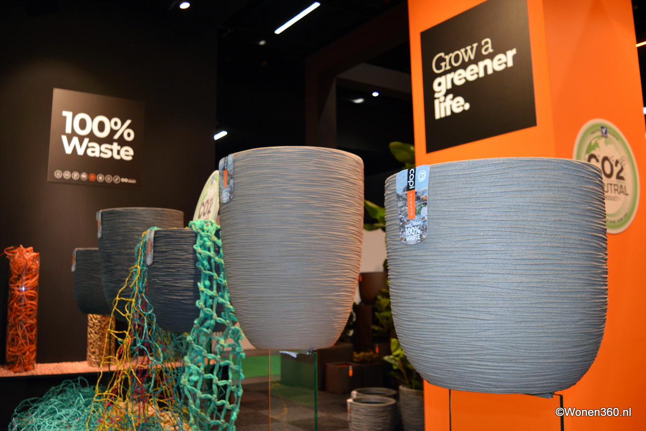 De 100% Waste collectie van Capi is uitgebreid met een nieuwe zandkleur. Deze producten zijn geproduceerd van gerecycled kurk, oude potten en zeeafval.